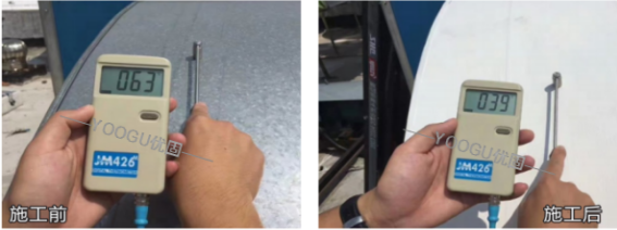 3. After the base coating is dry (about eight hours), apply/spray/roll-coat-layer YOOGU high-core thermal insulation king surface coating, and finally wait for the surface thermal insulation coating to dry.