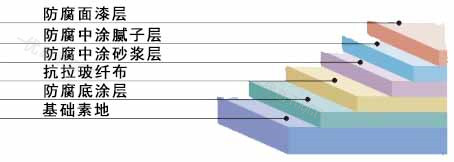 4、腻子层:用环氧防腐中涂材料调配石英砂或双飞粉刮批腻子层,按需要施工二至三道, 要求达到平整无孔洞、以利面涂施I ;
