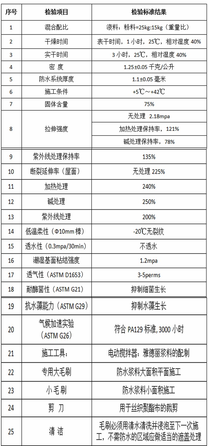 6.具有抗静水渗透压力优异;抗冲击性好、长效防霉抗菌、抗藻性能。