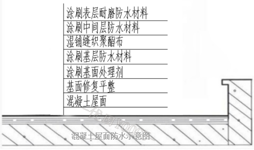 5.涂刷表层(三涂) :待上道涂层干固后,再涂刷一道混凝士屋面丙烯酸高弹表层防水涂料(保护层可选高弹、耐磨、隔热等功能型表层)。
