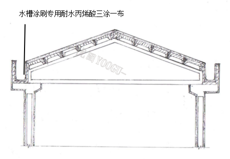 5、三涂:待二涂-布干固后,再涂刷水槽耐水丙烯酸表层防水涂料一道。